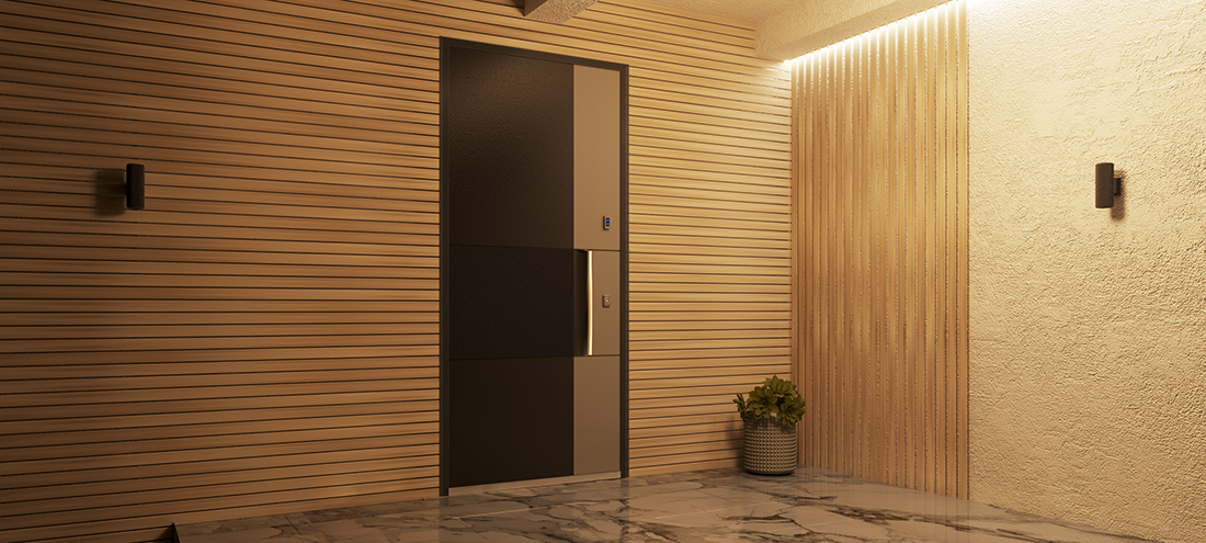 Открытие замка по средствам сканера отпечатка пальца или смартфона – стало реальностью. Теперь ваш палец или смартфон станет ключом от входных дверей в ваш дом. Это стало возможно благодаря системе e key. На этапе производства интегрируется электромеханический замок, настраивается с помощью специального ПО. После чего, управление входными дверями возможна с помощью телефона из любой точки мира.